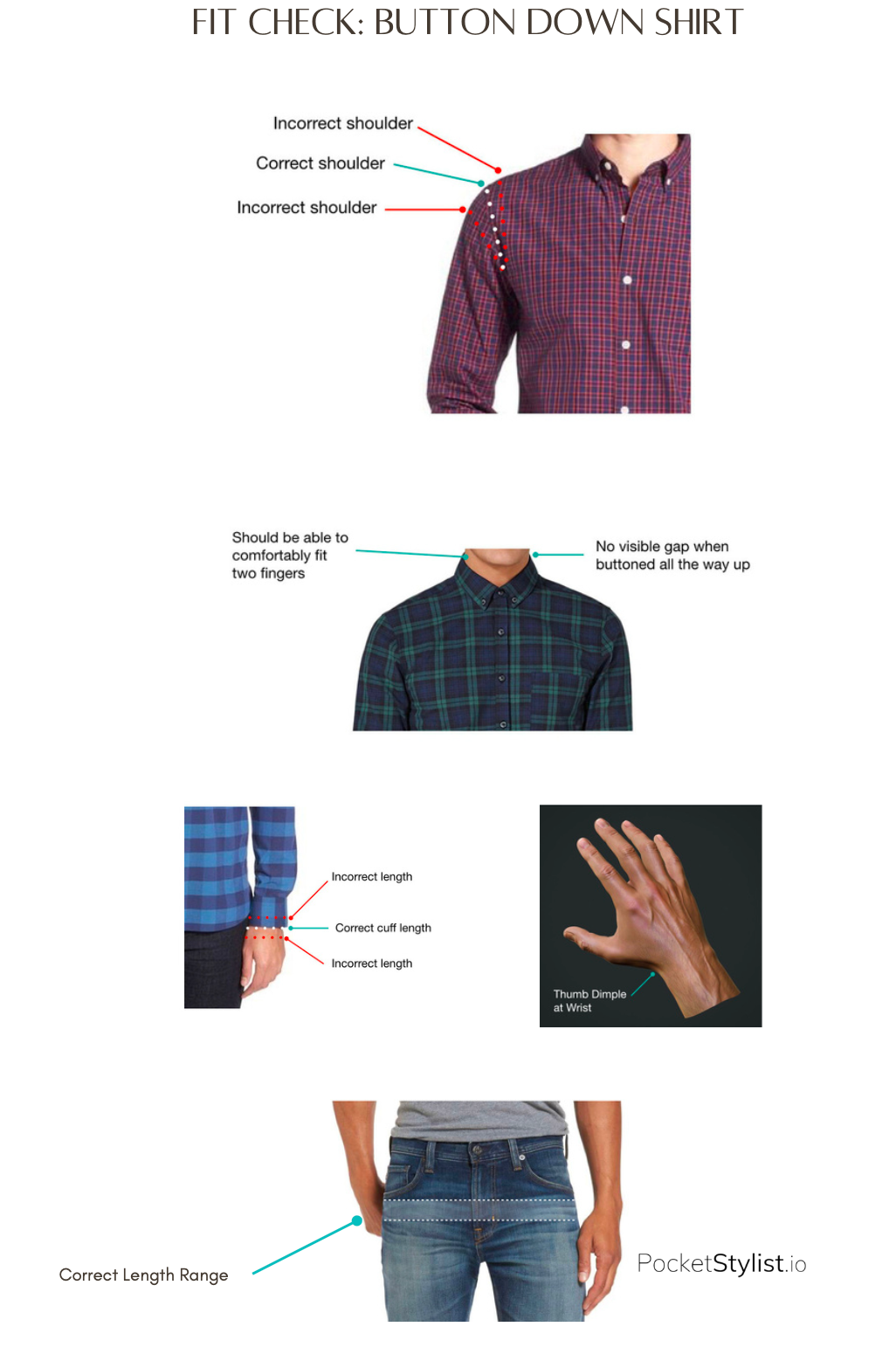 Tip: Check the length of your favorite fitting button down (where neck and shoulder meet to the bottom hem of the shirt). Some stores and brands will tell you the shirt length online and you can compare numbers to know if it will fit you.