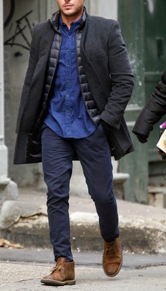 Pairing chinos with boots is a very modern and fashion forward look and can be worn in a number of ways. Keep in mind, when wearing them with boots, they may slightly bunch at the bottom and it’s okay.