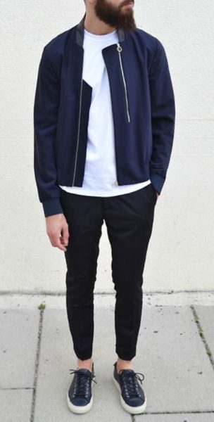Sneakers, including slip ons, will dress chinos down, but you can keep them stylish by going for a leather or suede sneaker as opposed to a running shoe. No break and rolled chinos work really well for this look. This combination is perfect for weekends and traveling, as it provides form and function.