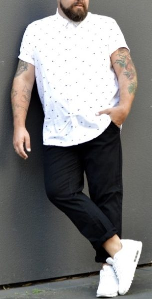 Full or multiple breaks with a looser leg will make your chinos look like they are bunching at the bottom and are too long for you. Chinos should have a clean finish and wearing the right length will help achieve that. Bonus: Chinos at the no break or a little break length will make you appear taller, as the bunches will weigh you down. Check out the following examples for what NOT to do.